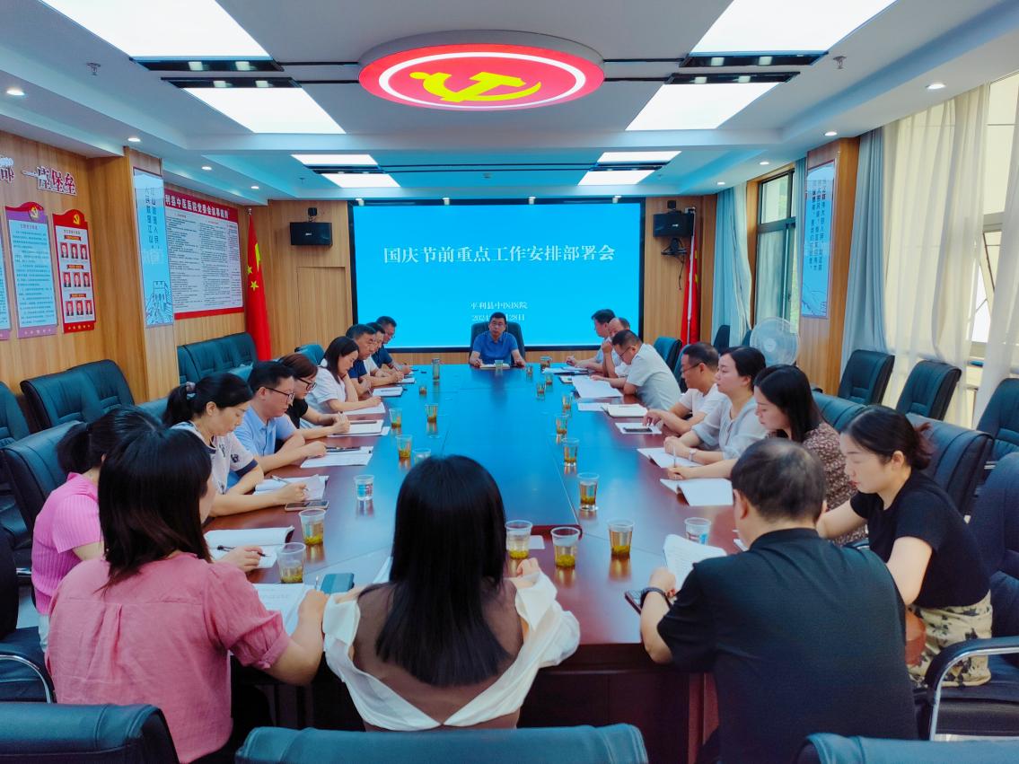 9月28日,平利县中医医院召开国庆节前重点工作安排部署会议,领导班子成员、各行政职能科室负责人参加会议。