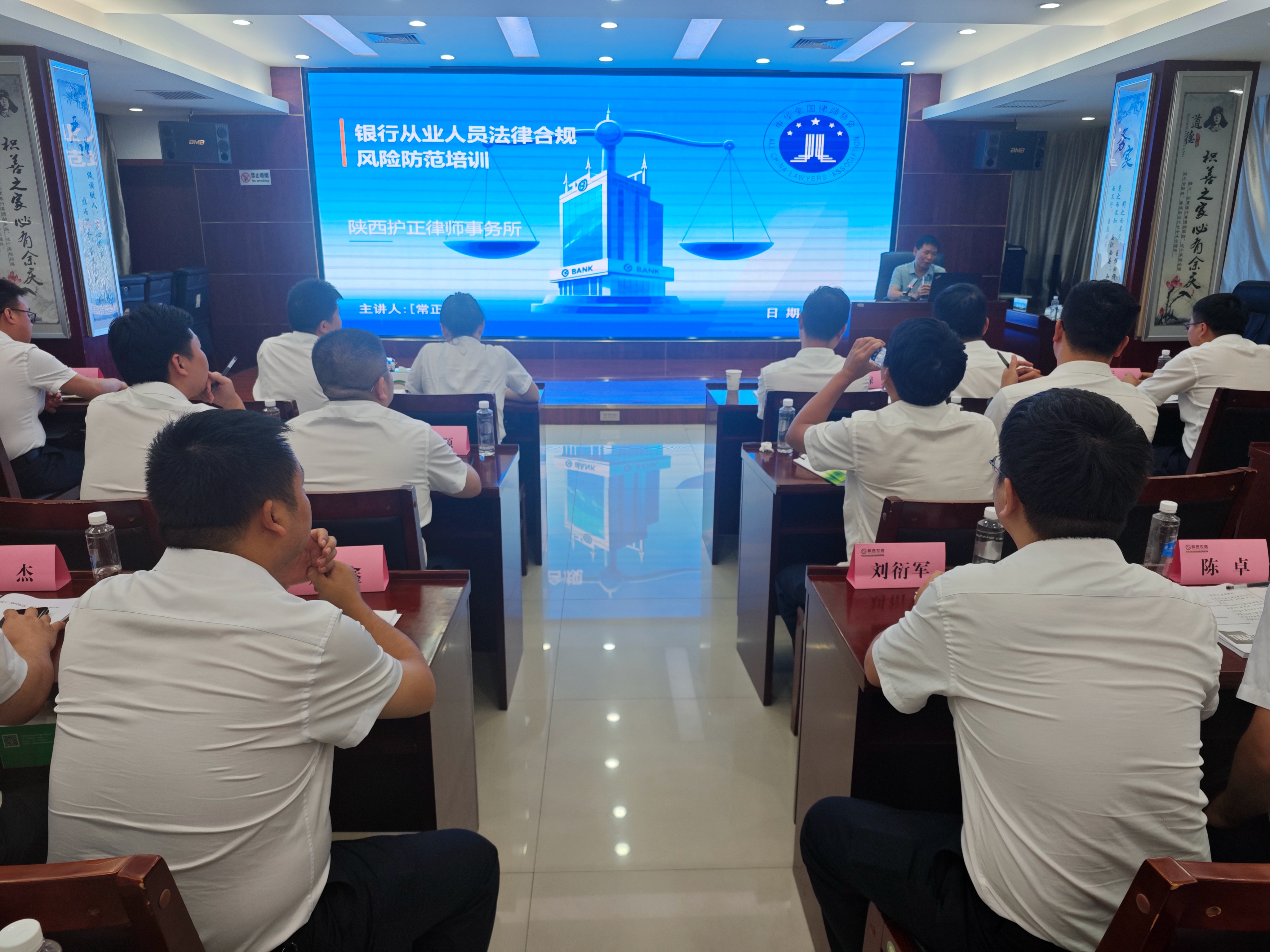 为深入贯彻落实省联社“13541”工作总要求,切实增强全员合规意识与法治素养,提升风险识别及防控能力,8月27日,陕西农信旬阳农商银行成功举办了2025年法治大讲堂活动。本期大讲堂以“银行从业人员法律合规风险防范”为主题,面向全行各支行行长及客户经理开展专项培训,邀请陕西护正律师事务所常正堂律师担任主讲。