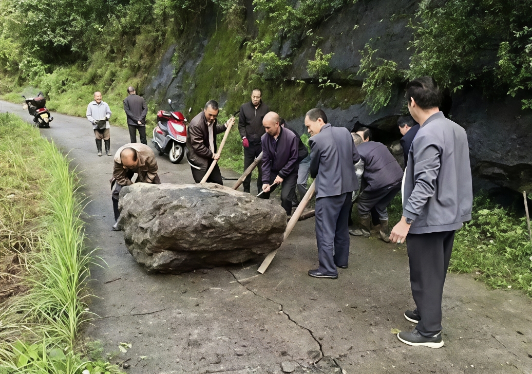 近日,白河县持续经历降雨天气,防汛防滑形势严峻,山体滑坡、落石垮方等风险极高,部分通村道路、河道沟渠被乱石堵塞,严重影响群众出行安全。面对险情,麻虎镇充分发挥统一战线的优势作用,结合“叫应帮解”社会治理工作机制,广泛动员镇村干部、网格员、志愿者以及各界人士,凝聚起防汛救灾的强大合力,共同构筑守护人民群众生命财产安全的坚固防线。