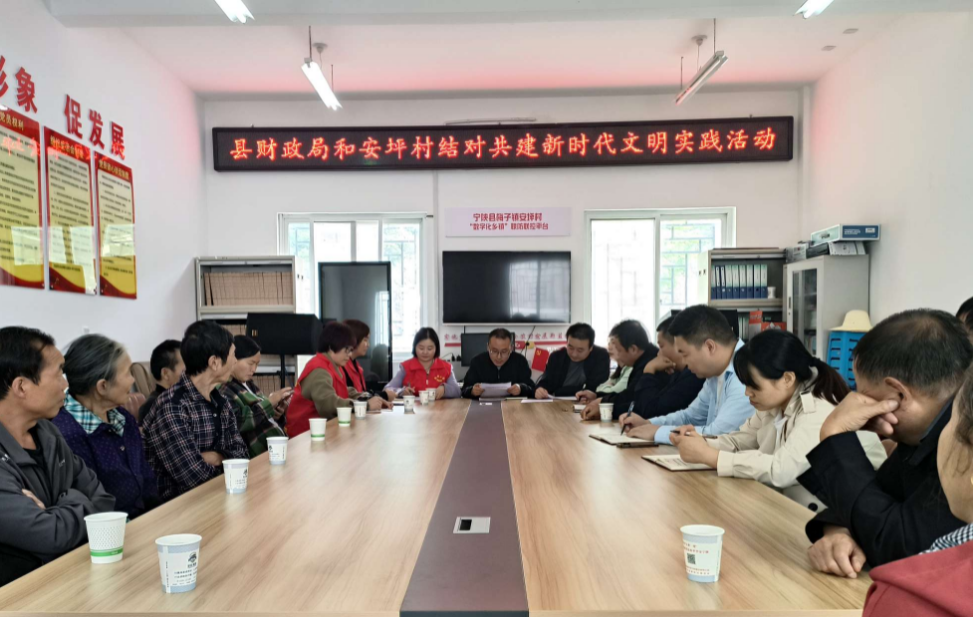 9月25日,宁陕县财政局到帮扶梅子镇安坪村举办文明单位与新时代文明实践所结对共建活动,县财政局分管领导和党员干部代表、安坪村驻村帮扶四支队伍和村民代表参加。