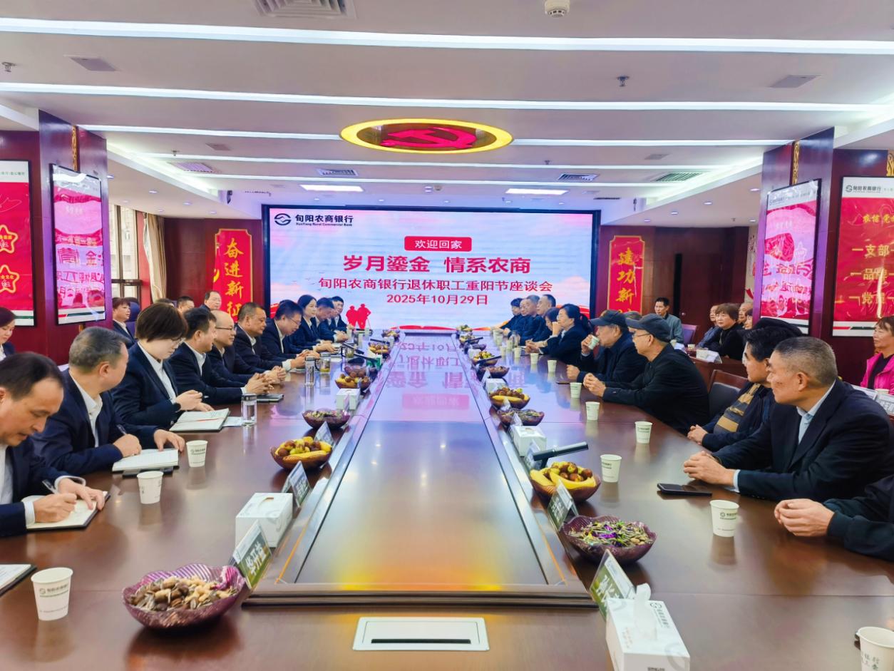 秋来又重阳,情意暖深秋。为弘扬中华民族尊老敬贤的优良传统,表达对退休职工的深切关怀与崇高敬意,10月29日,陕西农信旬阳农商银行七楼会议室温情涌动,一场以“岁月鎏金 情系农商”为主题的重阳节退休职工座谈会温馨举办。30余名退休老同志代表与行领导班子成员、机关员工代表齐聚一堂,共忆峥嵘岁月,共话农商未来。座谈会由工会主席主持,通过六项议程传递关怀、凝聚共识。