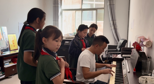 紫阳县瓦庙镇九年制学校的音乐教室里,一盏灯每晚准时亮起。音乐教师李镜镜坐在钢琴前,指尖流淌的旋律,正为四名留守儿童录制专属于他们的歌赛伴奏。