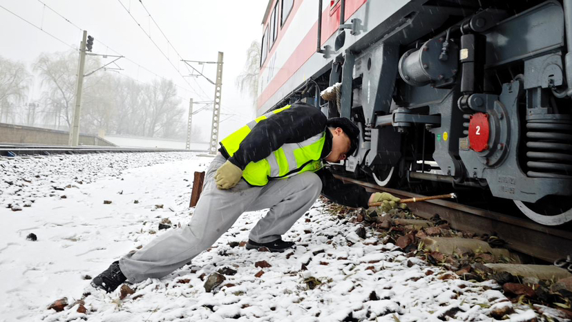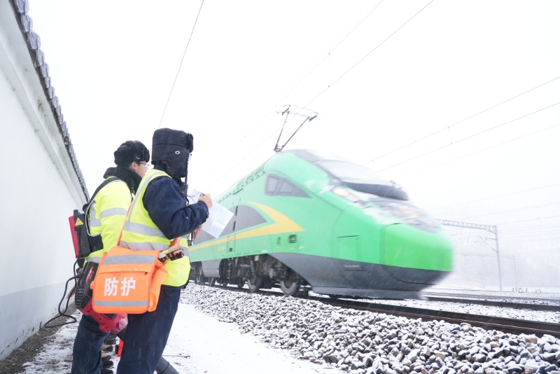 零下14度的守护:风雪中,他们为轨道车“热身”保畅通