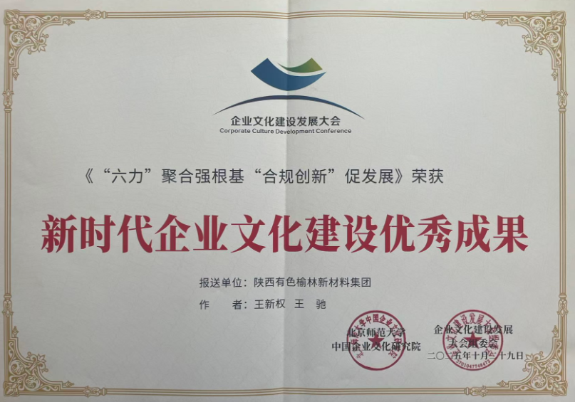 榆林新材料集团荣获“新时代企业文化建设优秀成果”奖