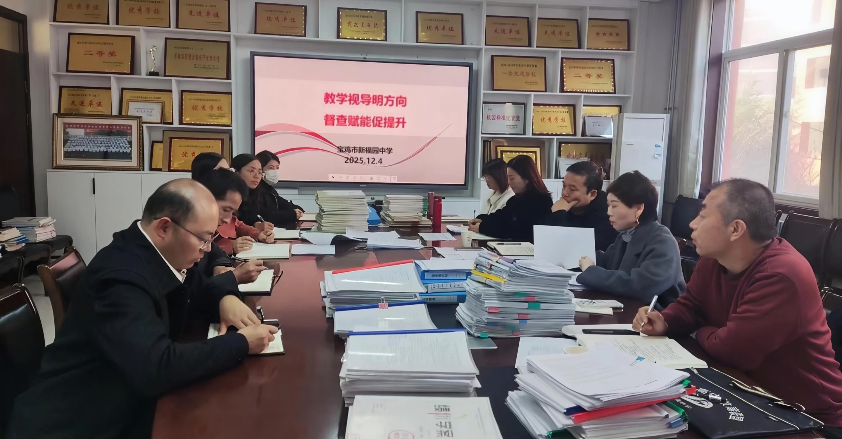 12月4日,宝鸡市金台区教育教学研究室主任齐宗锁、副主任刘卫锋一行8人到宝鸡市第一中学分校宝鸡市新福园中学,对九年级教学工作开展督导检查。