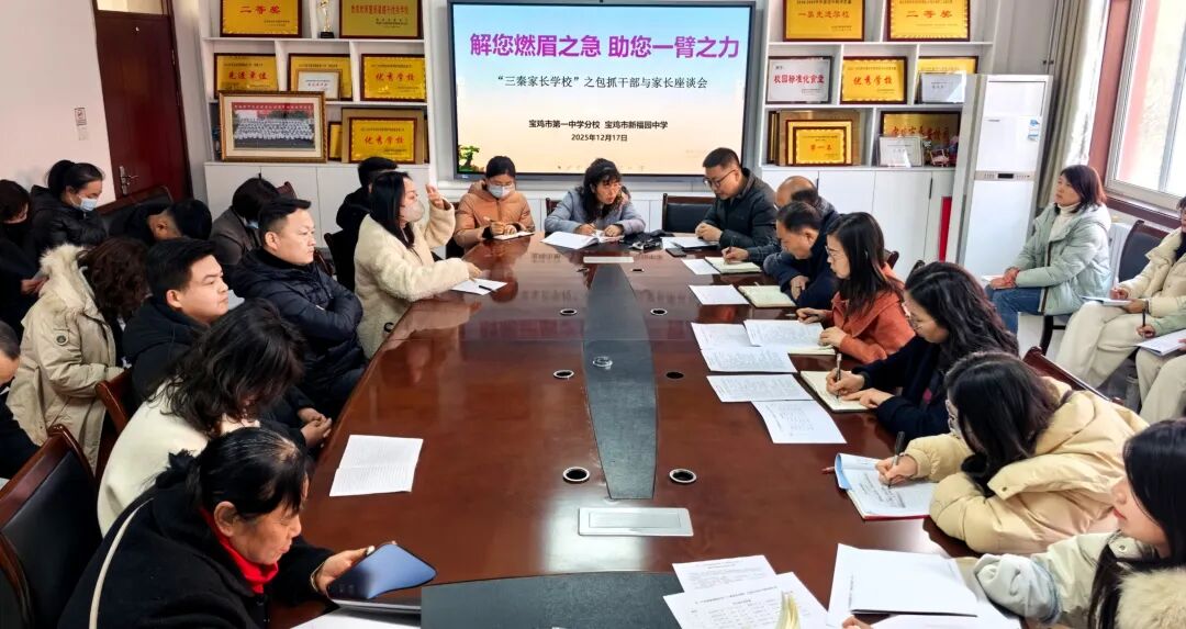 12月16日、24日、26日,宝鸡市第一中学分校新福园中学分年级召开了“三秦家长学校”帮扶干部与家长座谈会。