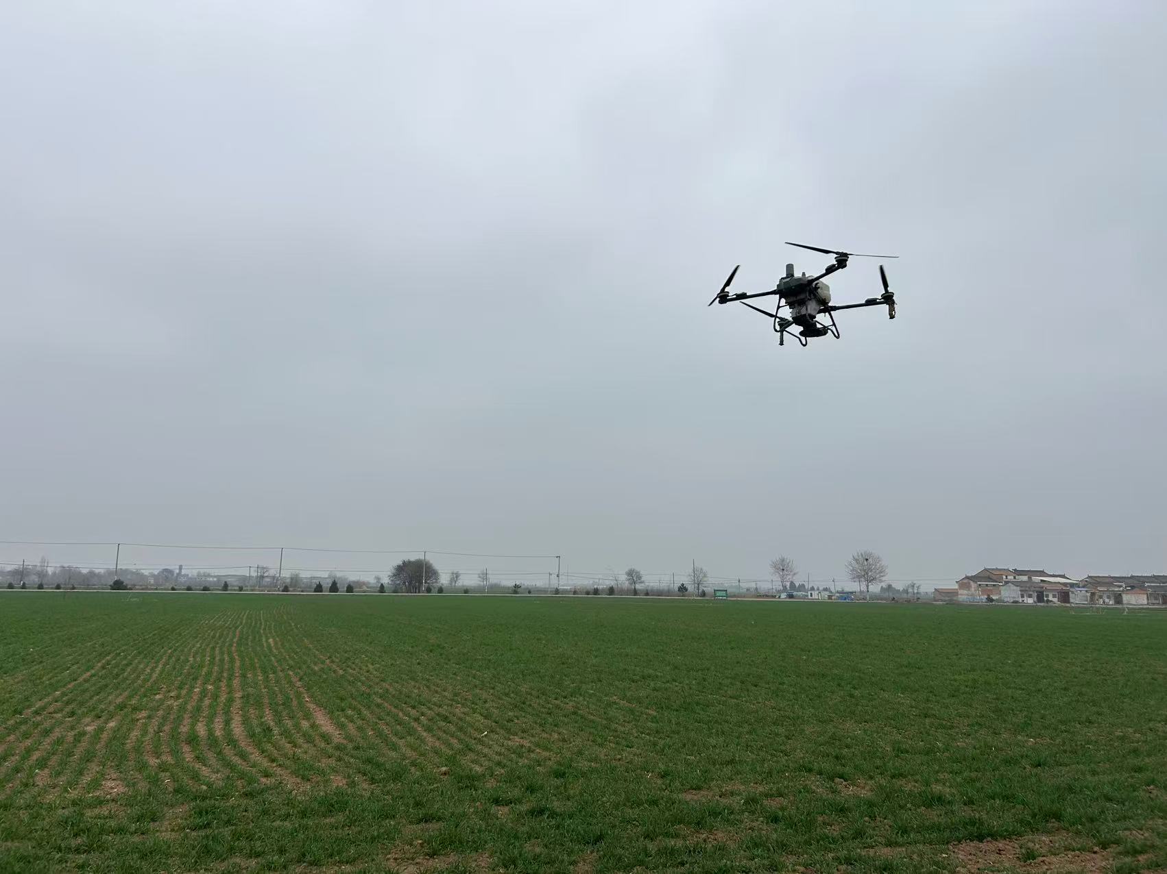 当前,小麦已进入返青起身关键管理期,在岐山县青化镇青化村的连片麦田中,专业技术人员操控着植保无人机,按照预设航线匀速飞行开展作业。