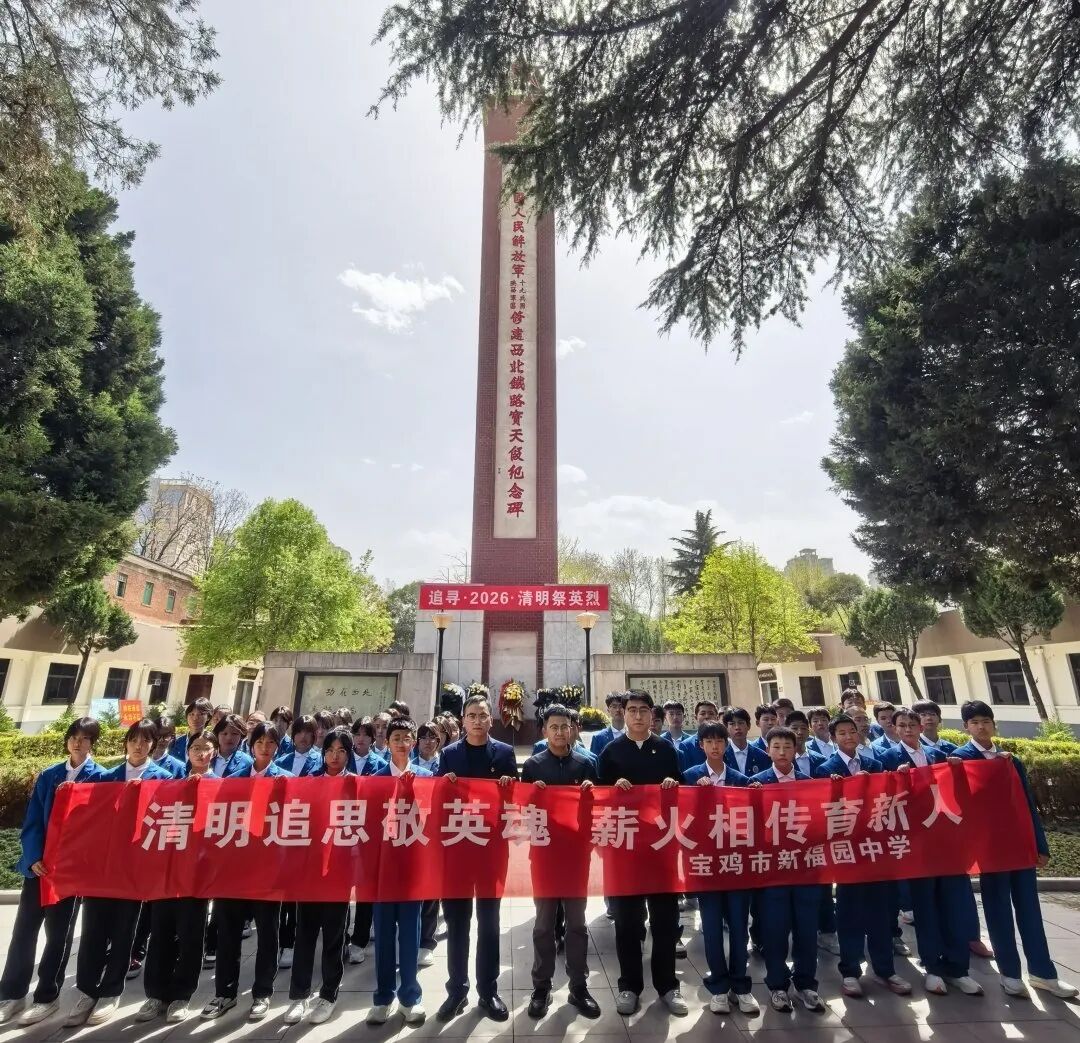 清明风暖寄哀思,英烈精神永传承。为深切缅怀革命先烈,传承红色薪火,厚植师生家国情怀,4月3日,宝鸡市第一中学分校新福园中学组织青年党员教师代表、团员代表和入团积极分子前往宝天烈士纪念馆开展“追寻·2026·清明祭英烈”主题教育活动。