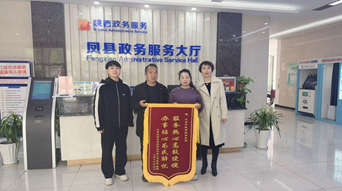 4月14日,凤县人民政府办公室(行政审批服务局)政务服务大厅内暖意融融,办事群众张先生手持一面鲜红的锦旗,郑重地送到社会事务审批窗口工作人员手中。