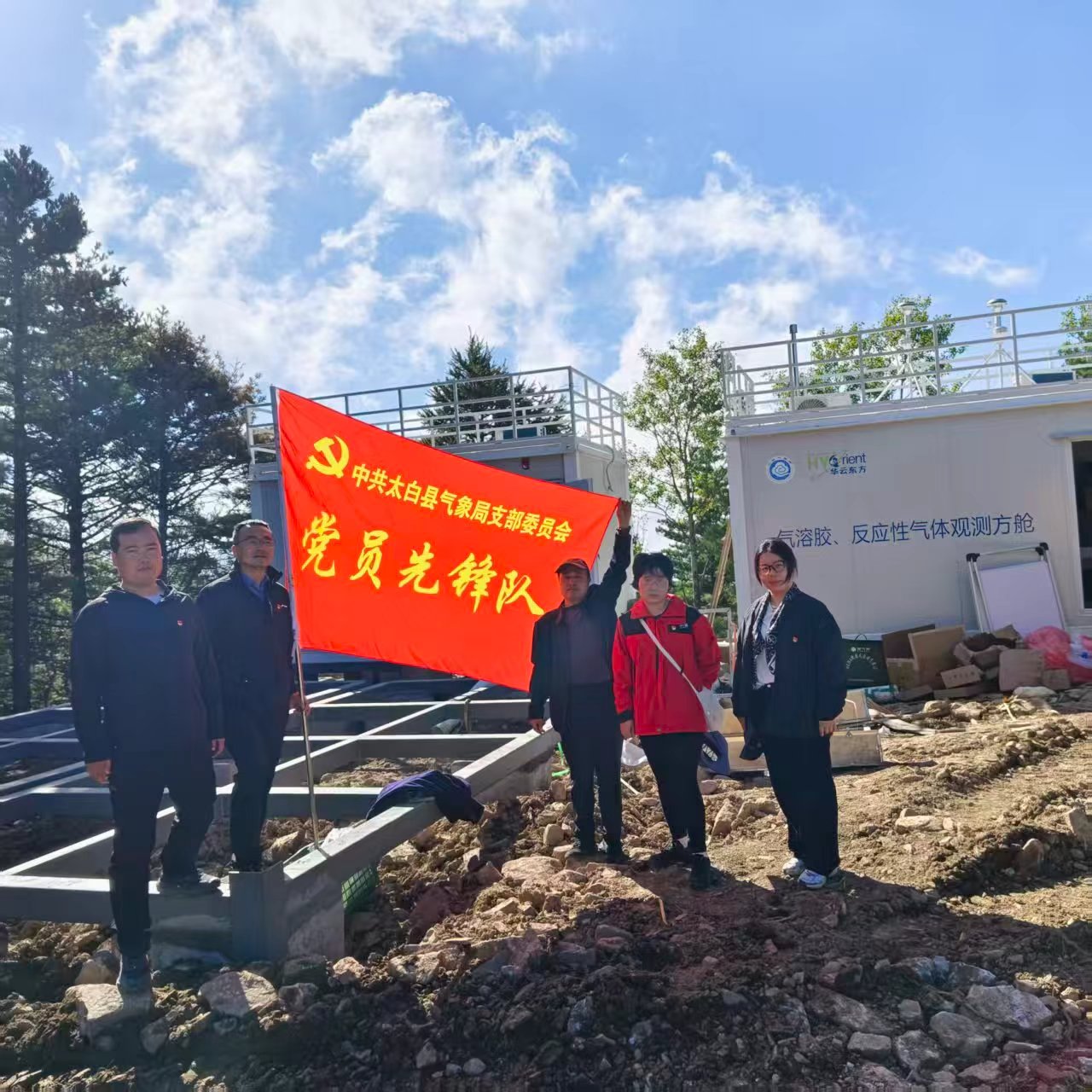 党旗飘扬鳌山之巅 党员攻坚本底站建设一线——太白县气象局党支部开展主题党日活动