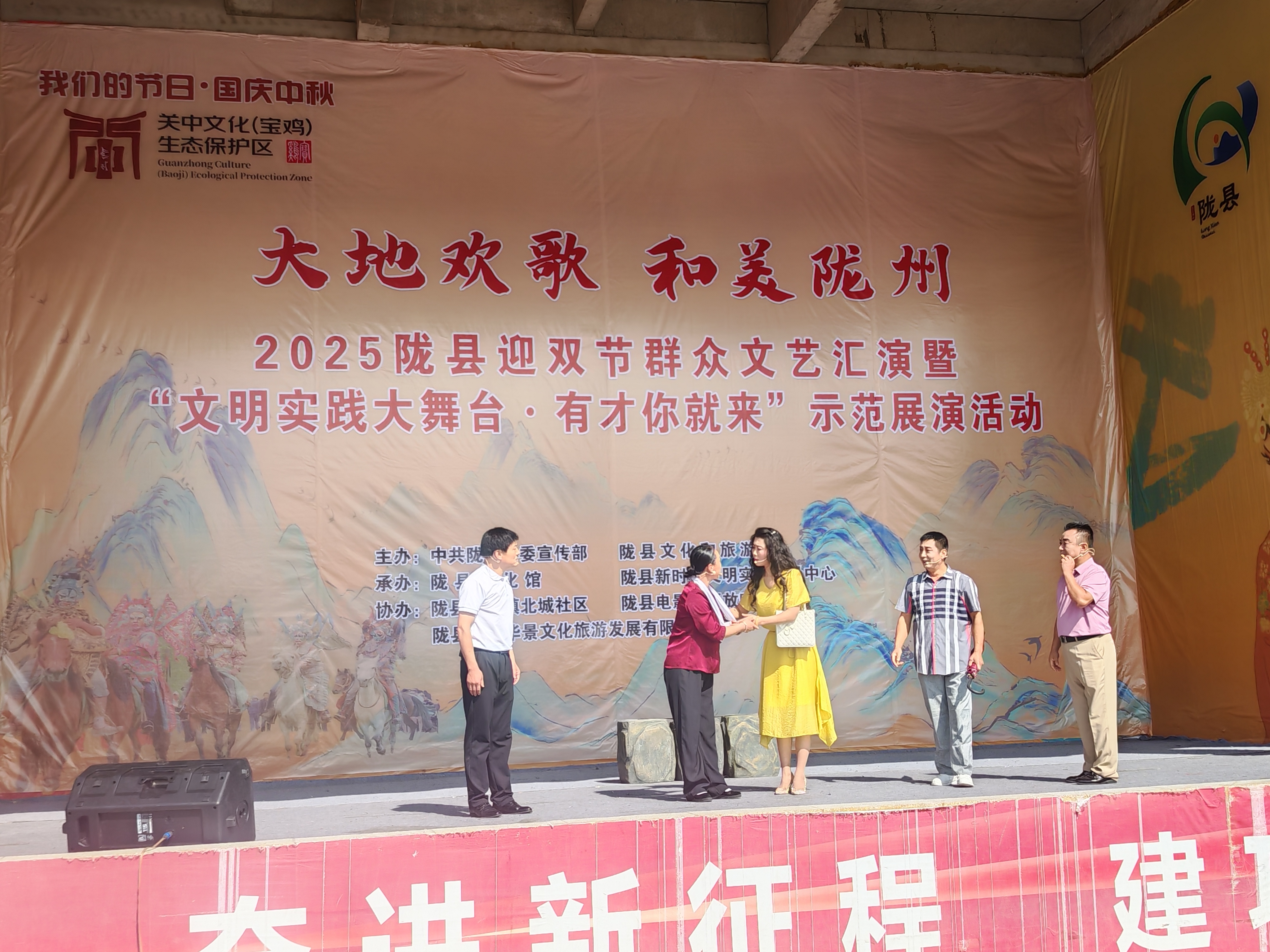 9月29日,陇县上河郡广场欢声不断、气氛热烈,“大地欢歌 和美陇州”2025陇县迎双节群众文艺汇演暨“文明实践大舞台·有才你就来”集中示范活动在这里精彩上演。由群众自编自演、贴近生活的15个节目轮番登场,吸引数百名群众驻足观看。