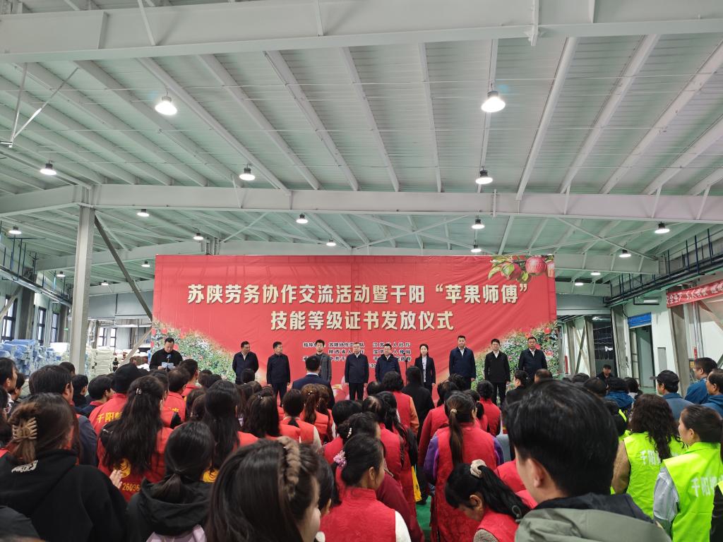 近日,千阳县在南寨镇红苹果物流园举行全省首家“苹果师傅”技能等级证书发放仪式。111名熟练掌握苹果种植、管理等技术的果农通过严格考核,获得由人社部门认证、国家和行业认可的果树栽培工中、高级职业技能等级证书。