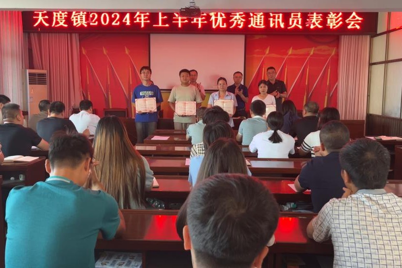 7月31日晚,扶风县天度镇举办2024年上半年优秀通讯员表彰活动,对今年上半年对外宣传工作中,表现突出、宣传稿件撰写数量、积分位居前5名的机关干部进行表彰奖励。