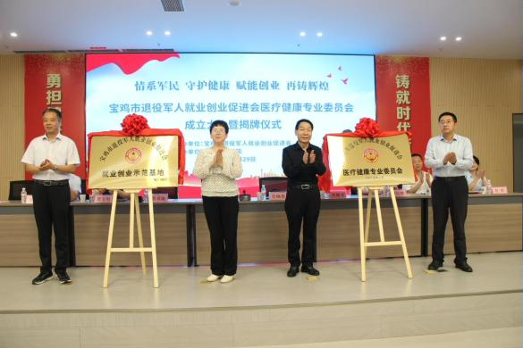8月29日,宝鸡市退役军人就业创业促进会医疗健康专业委员会和退役军人就业创业示范基地在宝鸡第三医院正式成立,标志着该院在服务退役军人及家属医疗健康领域迈上新的发展台阶。