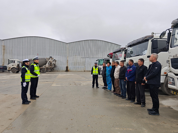 为深入推进“三问”提振精气神服务高质量发展专项教育活动走深走实,10月23日,宝鸡市太白县公安局交通管理大队聚焦第二阶段“严问执法、护企惠民”主题,组织民警先后走进辖区重点货运企业永靖商砼及244国道危化品检查点,通过“执法规范+精准服务”双轮驱动,为危化品运输车辆及货运企业营造安全有序的交通环境,为太白经济社会高质量发展注入“警营动能”。