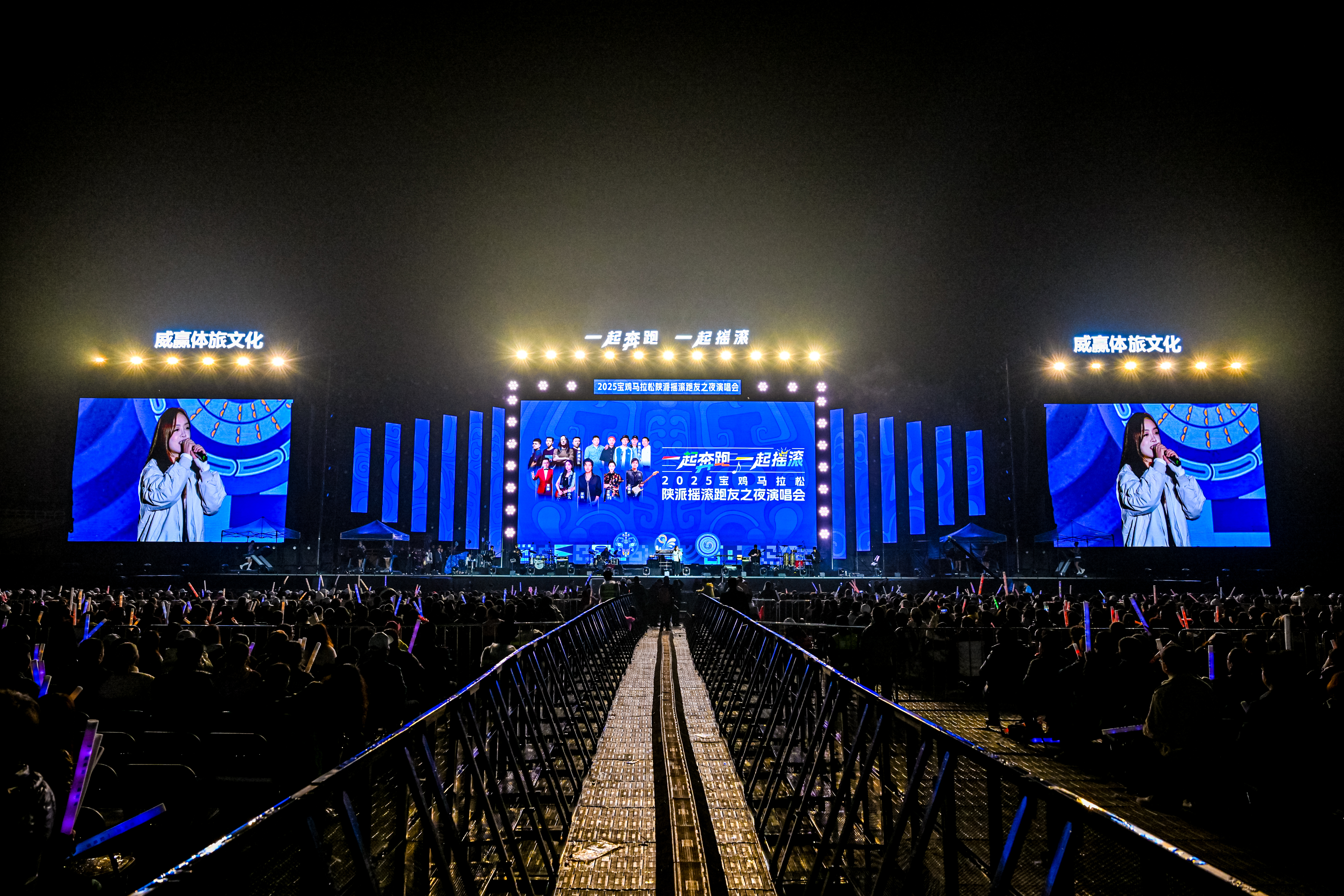 10月24日晚,宝鸡市体育场化身音乐的海洋,2025宝鸡马拉松陕派摇滚跑友之夜演唱会在此盛大举行,以音乐的力量为即将于26日开跑的马拉松赛事奏响激情前奏。