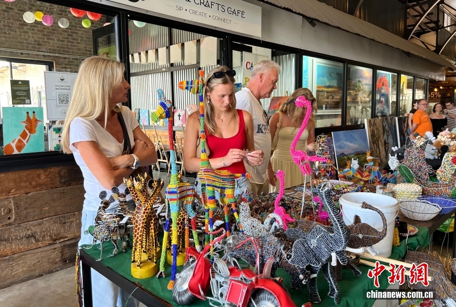 当地时间1月11日,在南非约翰内斯堡一处市集,民众挑选手工艺品。周末市集整合餐饮、购物及手作艺术体验等,为民众提供休闲去处,也成为当地小微创业者展示创意的窗口。