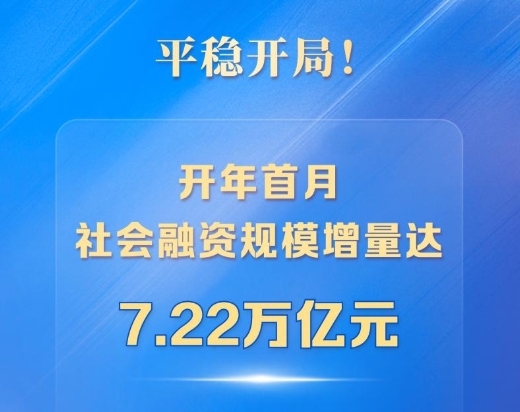 新华鲜报丨平稳开局!开年首月社会融资规模增量达7.22万亿元