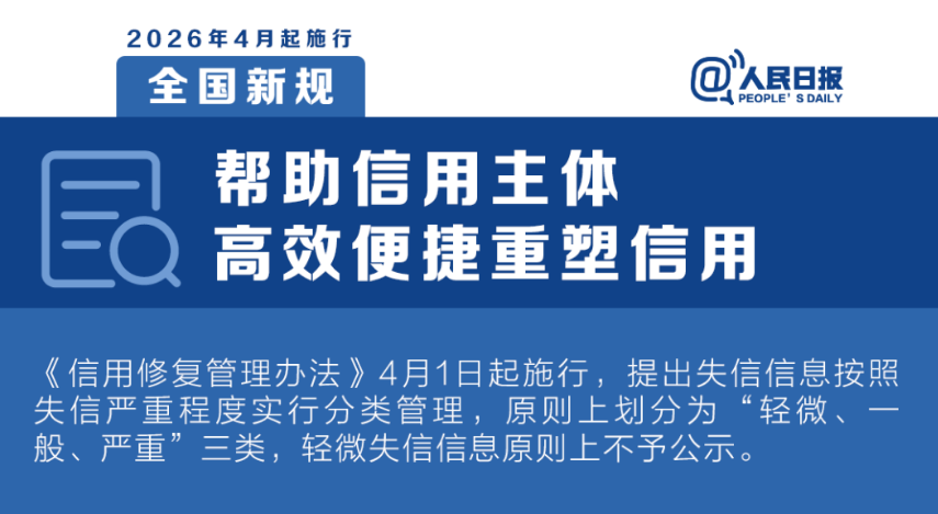 为解决群众“信用困境”,支持信用受损但积极还款的个人重塑信用,助力经济持续回升向好,中国人民银行于2025年12月出台“一次性信用修复政策”。今天(3月31日),这项政策即将截止。