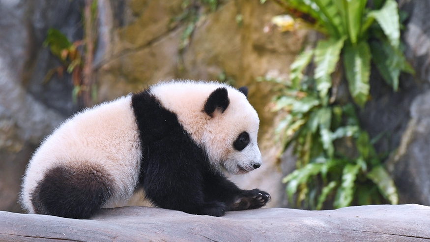 香港海洋公园27日举办发布会,公布首对“港产”龙凤胎大熊猫正式命名为“加加”“得得”。
