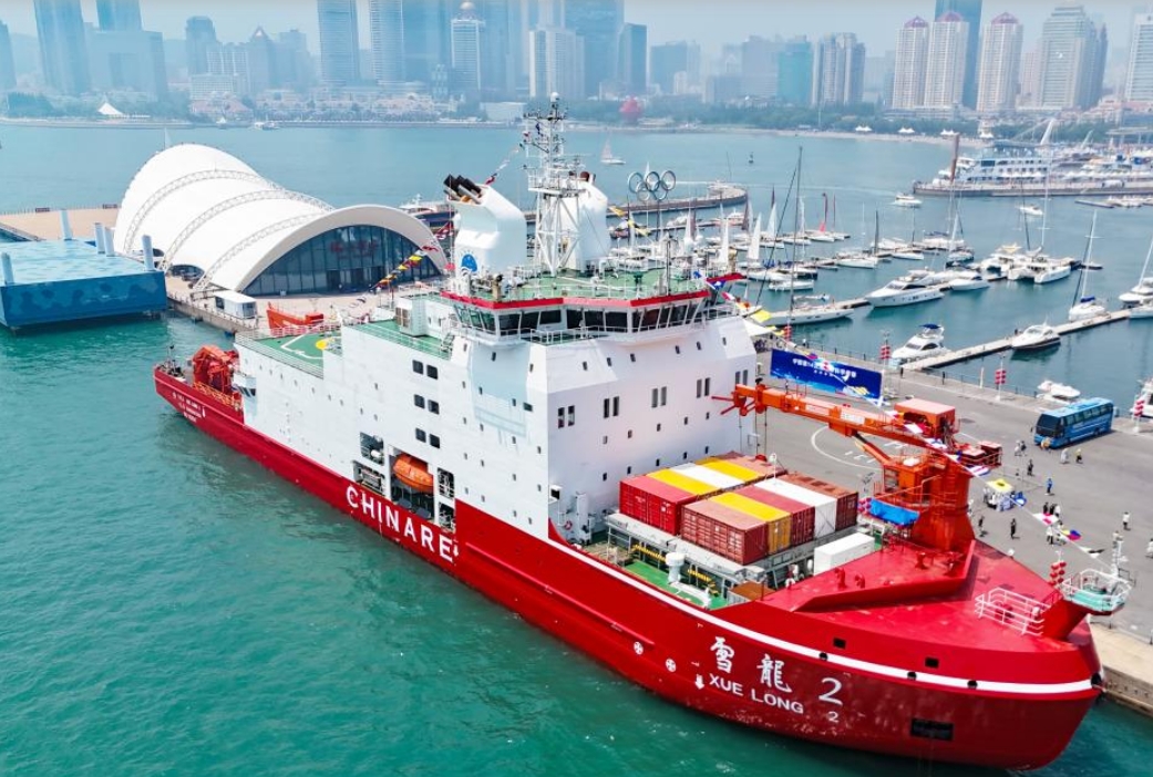 “雪龙2”号和“极地”号破冰船亮相青岛向公众开放参观