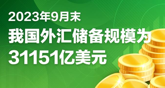 国家外汇管理局7日发布数据显示,截至2023年9月末,我国外汇储备规模为31151亿美元,较8月末下降450亿美元,降幅为1.42%。