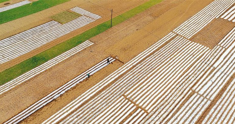 3月底,甘肃省武威市民勤县苏武镇元台村高标准农田里机器轰鸣,搭载浅埋滴灌水肥一体化技术的小麦播种机来回穿梭,一次性完成开沟、播种、施肥、铺设滴灌带、覆土等多道工序,为沙漠边缘的旱作农业按下春耕“快进键”。