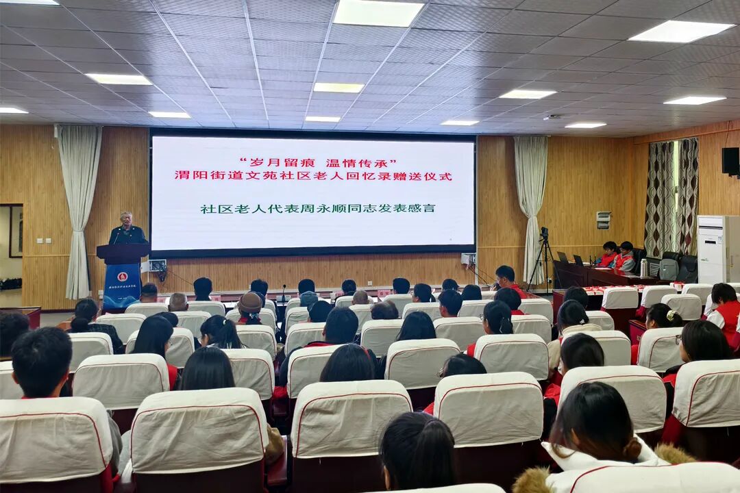 12月12日,“岁月留痕温情传承”咸阳市渭城区渭阳街道文苑社区老人回忆录赠送仪式圆满举行,20位老人收到了承载着自己人生岁月的专属回忆录,共同见证这份凝聚着代际温情与时代记忆的珍贵礼物正式交付。