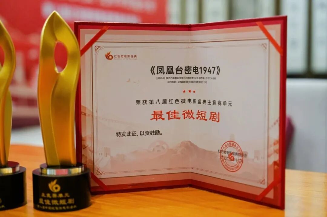 近日,第八届中国红色微电影盛典推优晚会在安徽六安中国红色微电影剧院圆满落幕,由陕西第七工坊文化传媒及西影传媒联合出品、渭城文化旅游投资开发有限公司共同投资完成的红色主题微短剧《凤凰台密电1947》,从613余部参赛作品中脱颖而出,荣获主竞赛单元“最佳微短剧”奖项,以光影之力传承红色基因,彰显了精品微短剧的创作实力与文化影响力。
