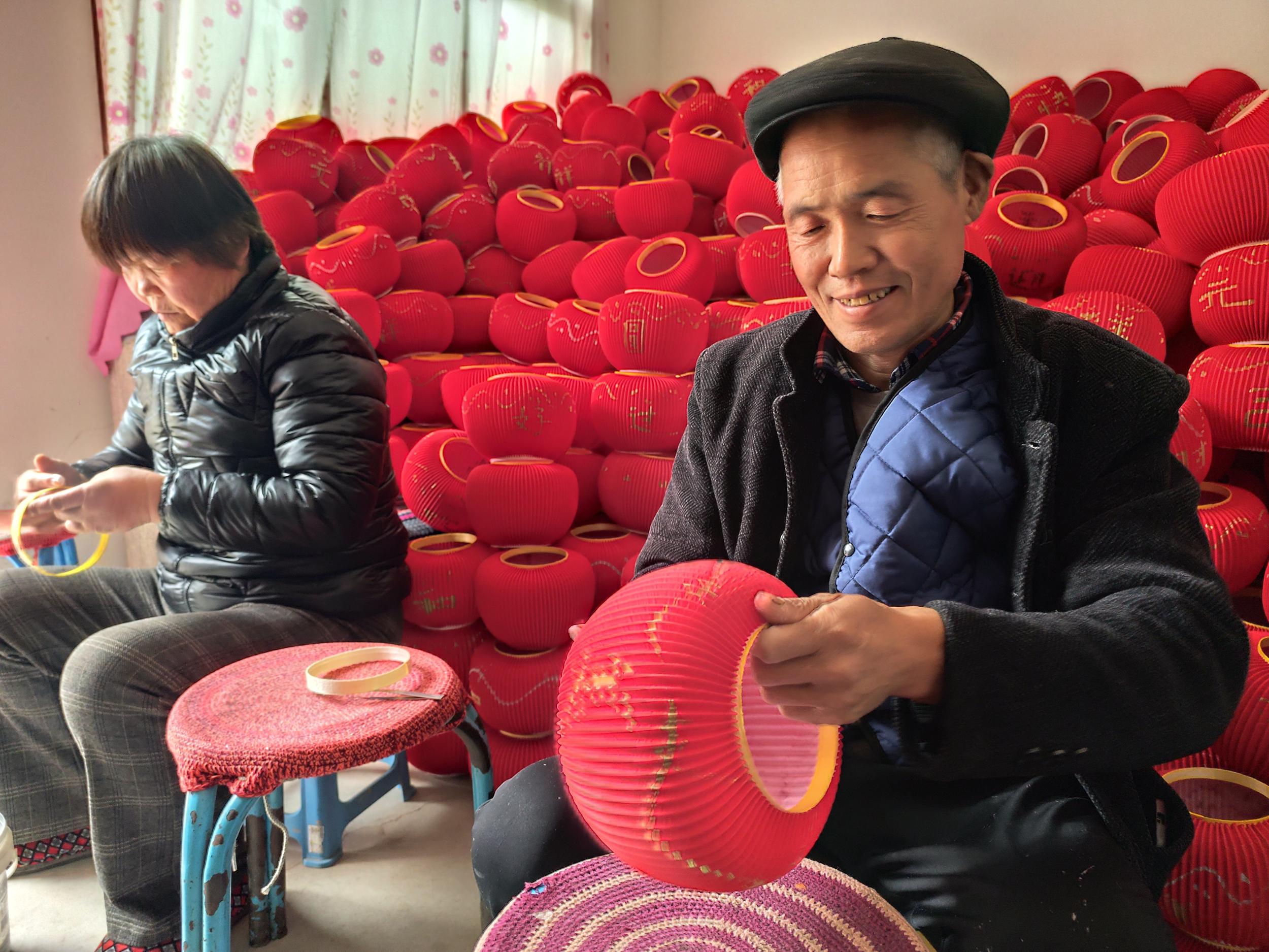 1月18日,走进陕西省咸阳市永寿县监军街道民丰村,村民一派忙碌。村民在家里赶制火罐灯笼,供应春节市场,喜迎新春佳节。