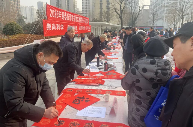 1月28日,2026年迎新春反邪教书法志愿者服务下基层活动在咸阳市渭城区凤凰广场举办。