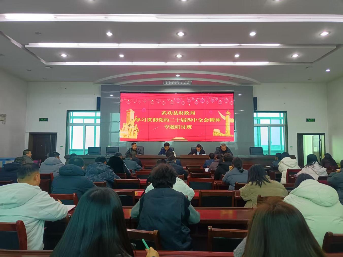 为深入学习贯彻党的二十届四中全会精神,切实把财政干部思想和行动统一到全会部署上来,1月28日,武功县财政局学习贯彻党的二十届四中全会精神专题研讨班正式开班。
