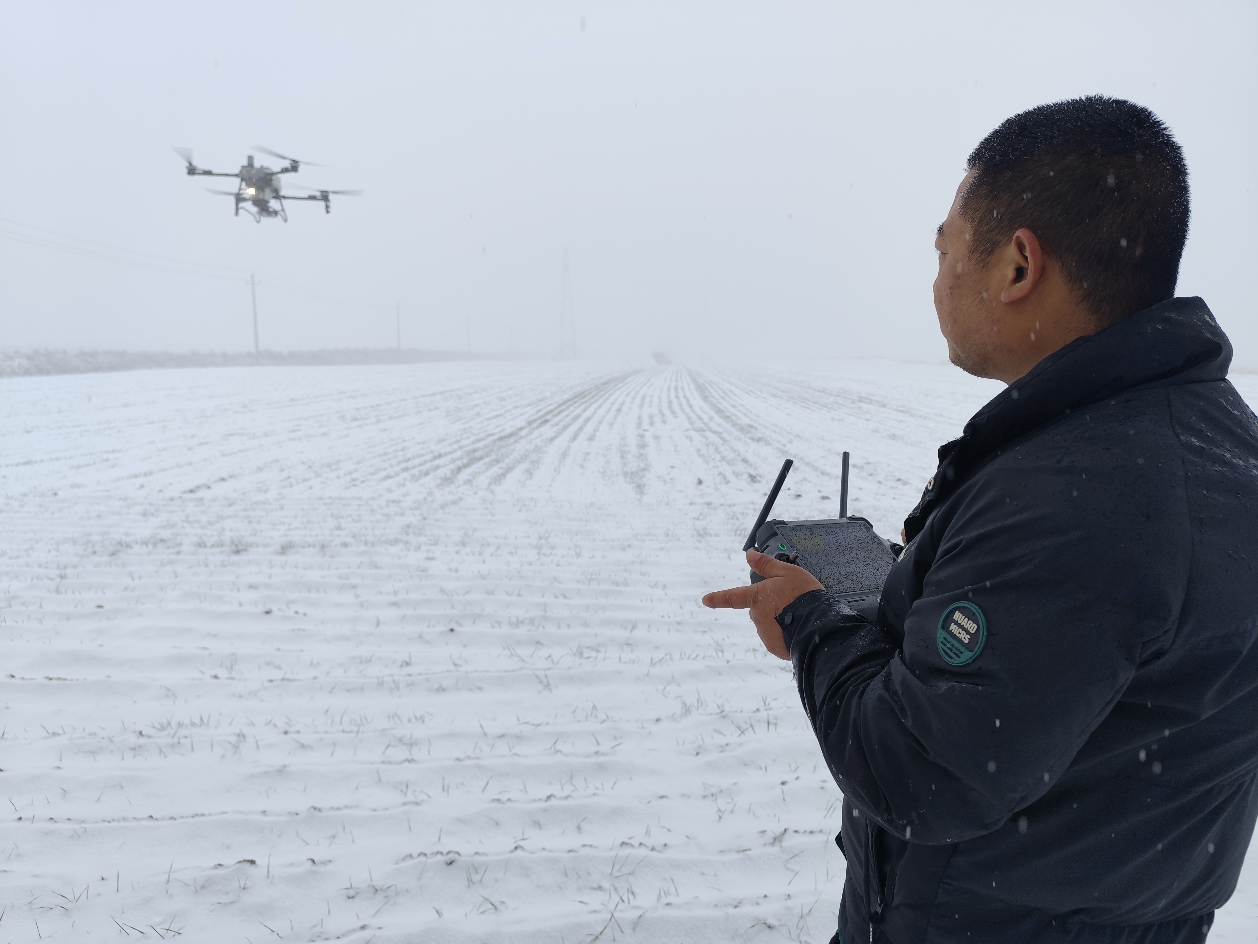 1月24日,陕西省永寿县普降瑞雪。永寿县农业技术推广中心抢抓天气降雪时机,农机人员深入田间,对小麦田间进行追肥管理,确保夏粮丰产。