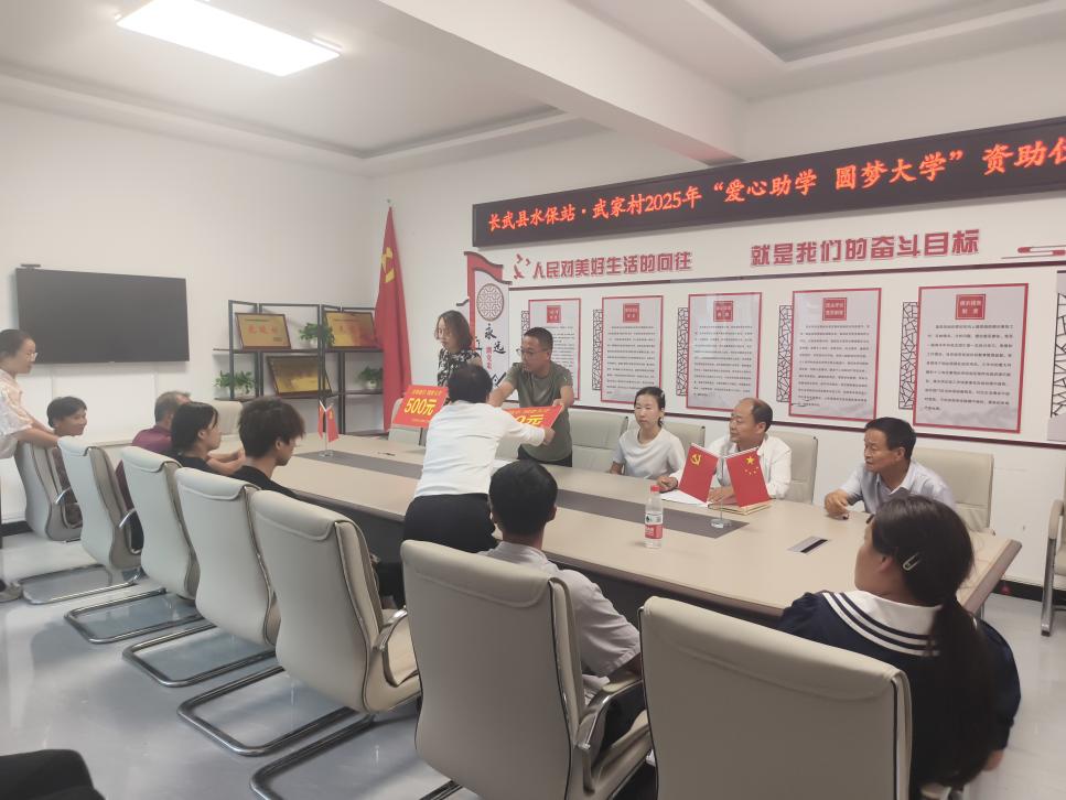 8月15日,长武县水土保持工作站对枣园镇武家村2025年新入学大学生开展助学帮扶活动。