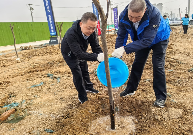 在3月12日第46个植树节,秦都农商银行党委、工会联合开展“农商筑绿城 执手种未来”主题义务植树活动。