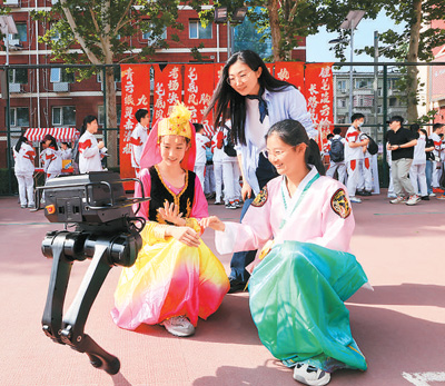 日前,中国人民大学附属中学分校举办科技艺术节。师生通过融合音乐、美术、地理、科学等学科的系列项目体验,感受前沿科技,提升艺术素养。