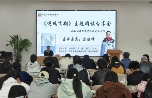 11月15日,由西安市碑林区图书馆主办承办的刘俊锋新著《逆风飞翔》阅读分享会,在西安市碑林区图书馆隆重举行。