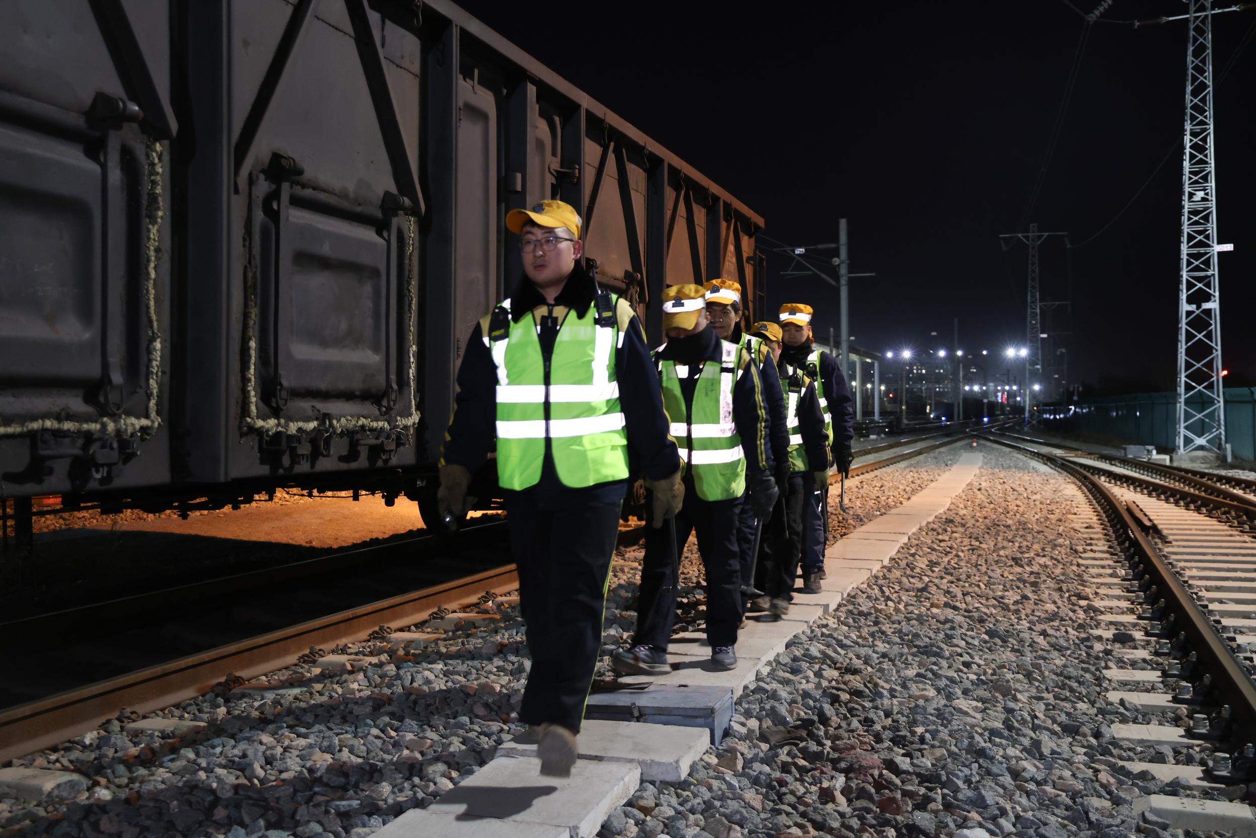 2月5日凌晨,包西铁路榆林站笼罩在黎明前的寒意中,中国铁路西安局集团有限公司榆林车辆段榆林运用车间的货车检车员们正在对途经的电煤运输列车进行技术检查。