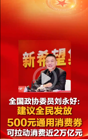 全国政协委员刘永好:建议全民发放500元通用消费券 可拉动消费近2万亿元