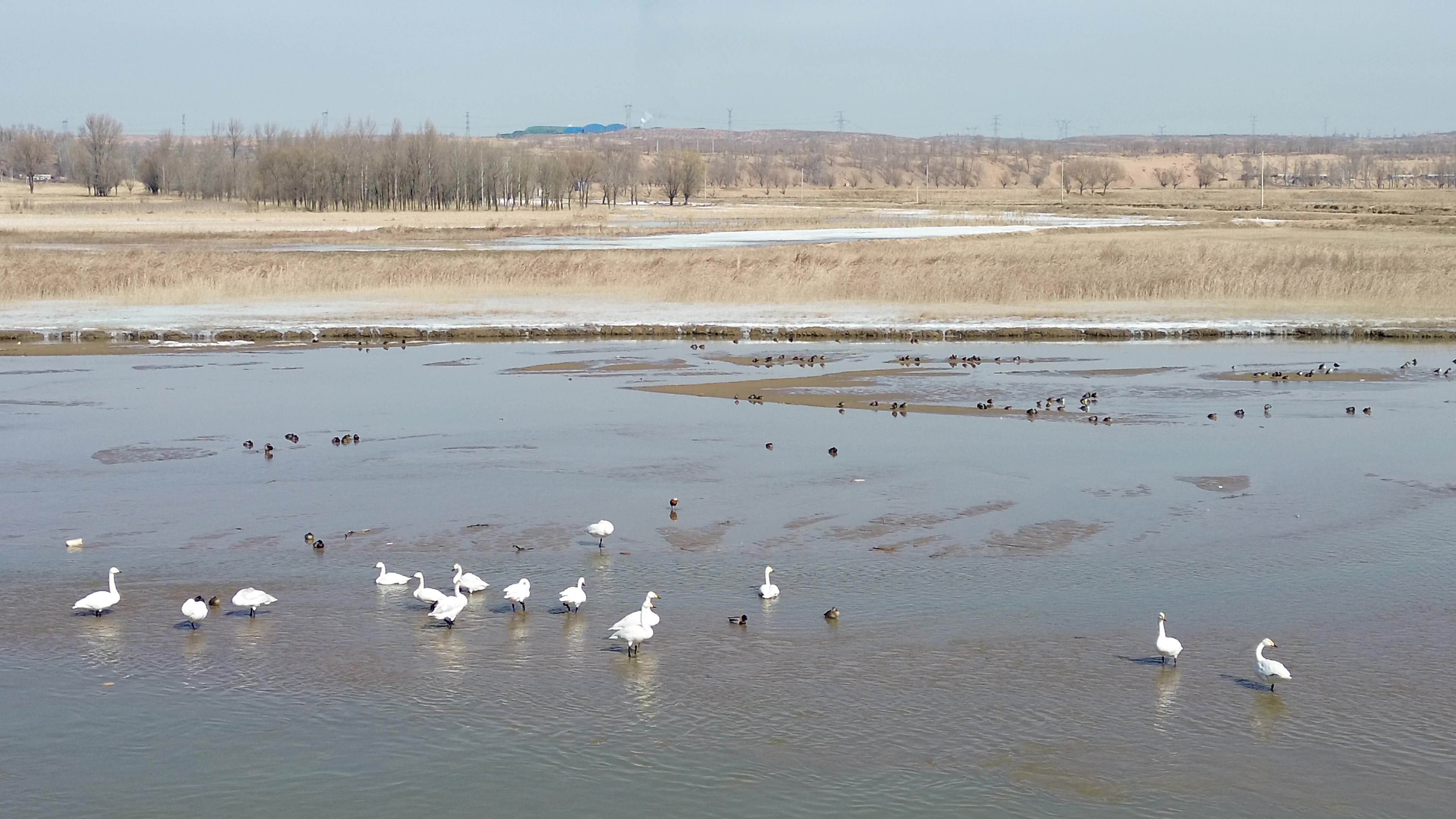 榆林市横山区:冰消雪融春意浓 百鸟翩跹栖湿地