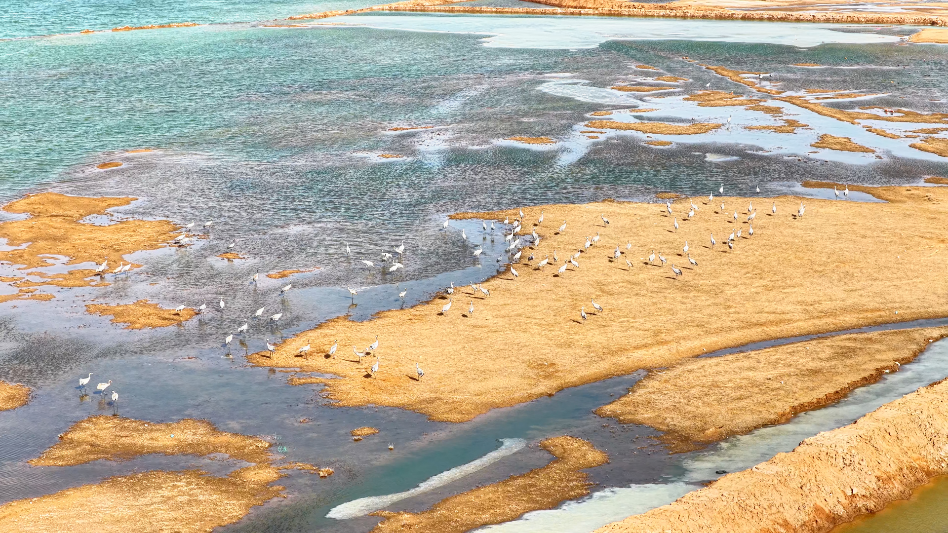 灰鹤翔集陕西定边 生态改善引来候鸟栖息