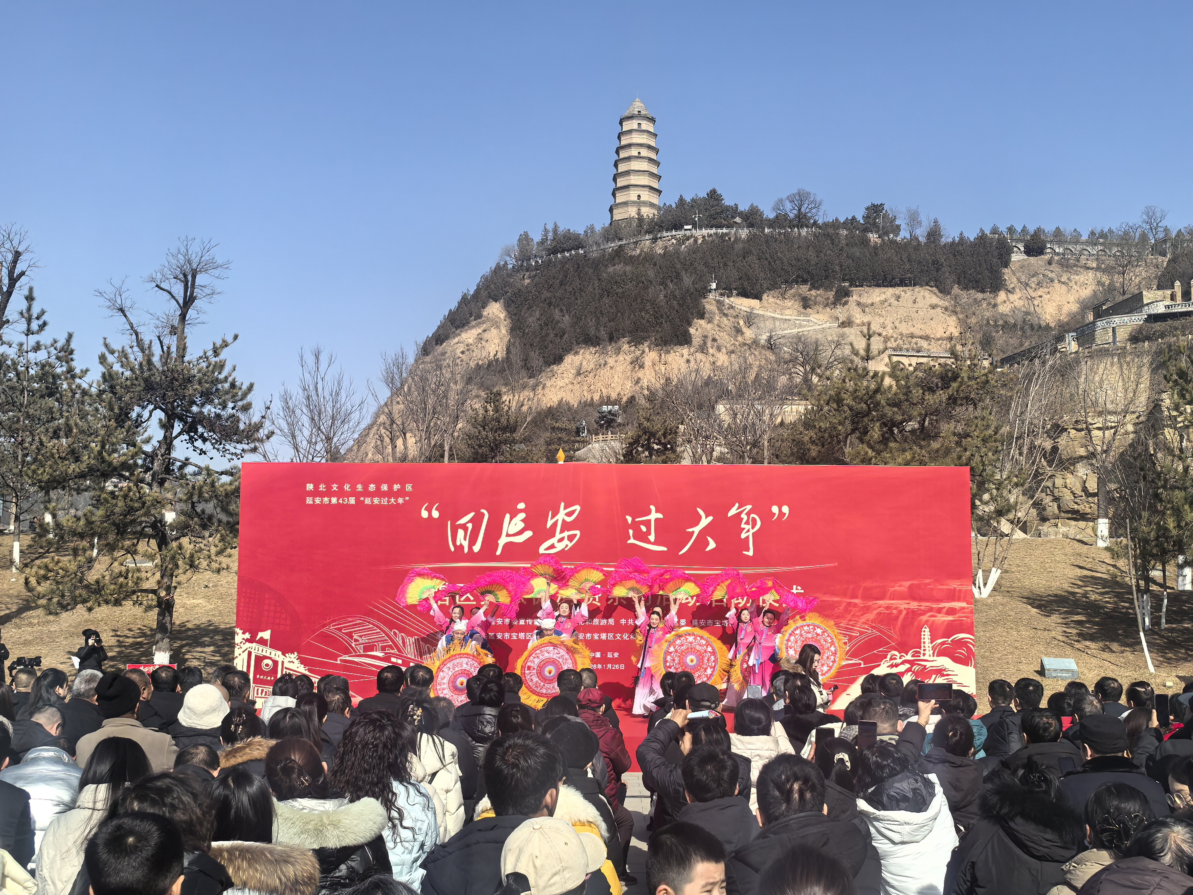 1月26日,农历腊月初八,延安市第43届“延安过大年”春节文化旅游系列活动暨宝塔区“回延安 过大年”文旅促消费活动在延安宝塔山星火广场正式启动。