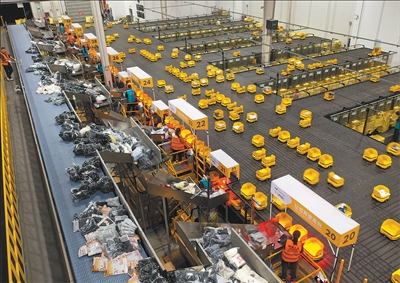 “双11”电商促销期间,各地电商和物流企业工作人员忙着销售、发货,一派繁忙景象。
