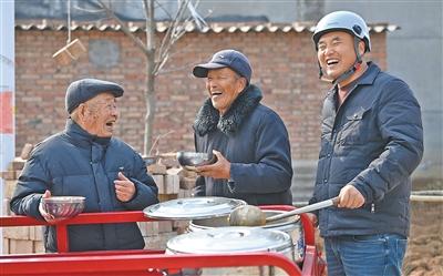 “晌午饭来了,取碗!”这一声洪亮吆喝来自秦岭北麓。陕西省西安市蓝田县三官庙镇里峪湾村党支部书记庞富强每天骑三轮车,为村里的老人送饭上门。