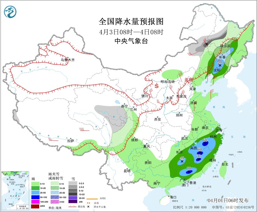 据中央气象台网站消息,昨日,浙江、江西、广东等地出现较强降雨,鲁苏皖鄂赣湘等地有大雾。预计4月2日至4日,江南、华南及贵州、重庆等地有大范围降雨和强对流天气,关注对交通运输、设施农业、春耕春播、城市运行等的影响;北方地区关注冷空气、大风降温、沙尘、雨雪天气;今晨苏皖湘黔等地有大雾,关注低能见度天气对交通安全的影响。