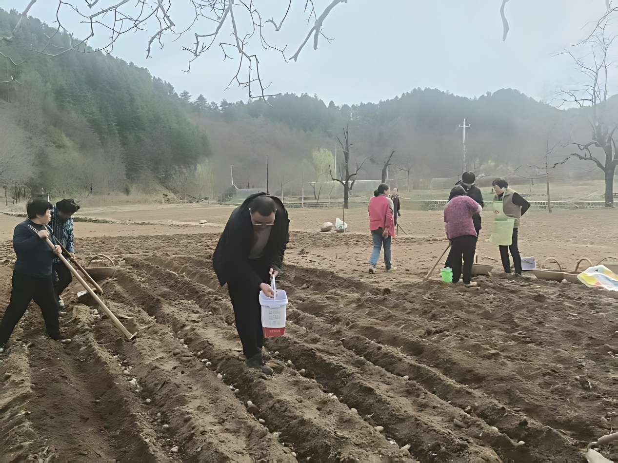 国网丹凤县供电公司驻马家坪村第一书记李银魁带领驻村工作队队员,拿起农具,化身“庄稼汉”,手把手帮助村内缺乏劳动力的脱贫户种植土豆,用实干与担当为群众排忧解难,让春日的田野里充满了温暖与希望。