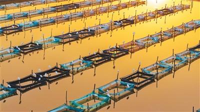 近日,江苏省宿迁市泗洪县半城镇的一处大闸蟹养殖基地内,连片的冬季暂养网箱整齐铺列,为大闸蟹提供了越冬场所。