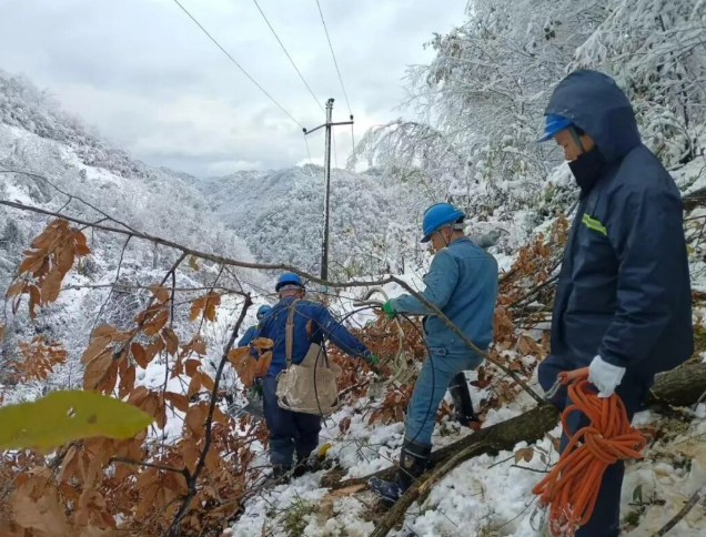 11月16日夜,镇巴县突降大雪,并伴随大风,受雨雪天气影响,镇巴县111观田线山王庙支线因沿线树木不堪积雪重负发生倾倒,导致线路运行故障,对局部区域正常供电造成影响。