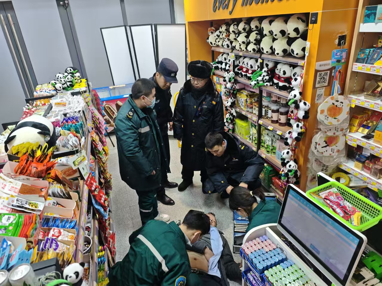 2026年2月6日9时13分许,佛坪车站候车室内新丰桥便利超市内突发紧急情况,旅客杨某购买商品时突然晕倒在地并伴随身体抽搐,事发原因不明,现场情况危急。