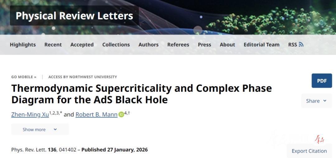 2月15日,记者从西北大学获悉:该校理论物理团队近日在黑洞热力学理论研究中取得重要进展,建立了黑洞热力学超临界特性的解析性方案,首次绘制黑洞超临界相图。